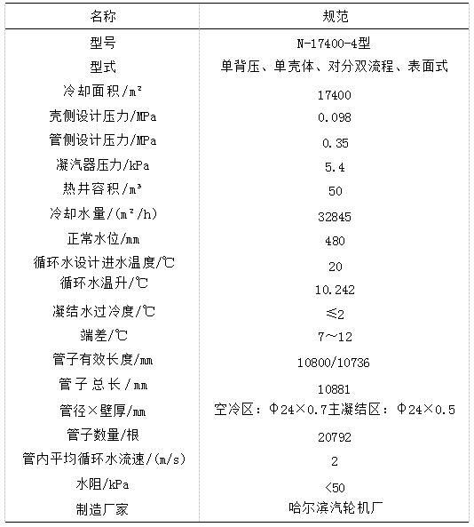 我公司#3汽輪發電機組是亞臨界一次中間再熱、單軸、高中壓合缸、雙缸雙排汽、抽汽凝汽式汽輪機,型號C300-16.7/538/538,凝汽器形式如表1所示。#3機組為開式循環,SF系列凝汽器膠球清洗裝置,配置5臺48LKXB-20立式單級單吸導葉內體可抽出式混流循泵,每臺循泵額定供水量10000t/h。
