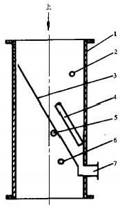 1一外殼:2—網前測壓點;3—導流板;4—軸;5-網板;6—膠球引出管;7一網后測壓點