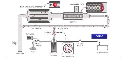 現(xiàn)就上述問題的成因做個(gè)簡(jiǎn)要分析及簡(jiǎn)述CQM膠球清洗系統(tǒng)的解決方案: