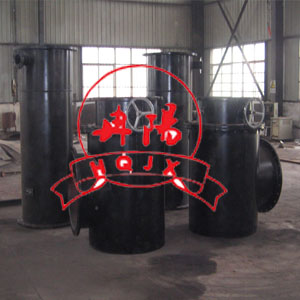 4、分匯器是一個三通閥,通過導(dǎo)向板的切換可使膠球進入需要清洗的一側(cè)凝汽器中工作。一般一臺機組需兩臺分匯器,其進口通徑為DN100,分配口為DN89,膠球投用時可通過窺視窗觀察運行情況。