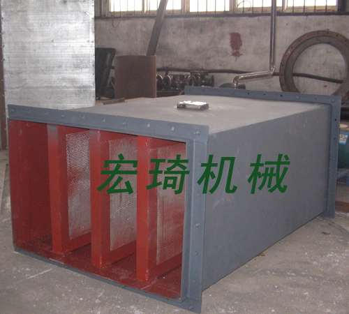 風(fēng)機(jī)消聲器系列產(chǎn)品為阻抗聲流型。本廠根據(jù)對(duì)發(fā)電廠各類風(fēng)機(jī)運(yùn)行現(xiàn)場噪聲源進(jìn)行實(shí)際測試所取得的瀕特性資料來確定在哪些頻譜范圍內(nèi)需要多大消聲量作為設(shè)計(jì)吸聲片結(jié)構(gòu)及流體通道的主要依據(jù),同時(shí)采用了具有較大吸聲材料飾面的狹矩形通道,以增強(qiáng)吸收效果。我們知道,風(fēng)機(jī)的噪聲源在最大噪聲級(jí)時(shí),其頻譜值往往不止一種,而對(duì)不同頻譜帶,對(duì)其消聲量要求也不相同。為此本產(chǎn)品采用了對(duì)高、中頻噪聲起消聲作用的阻式結(jié)構(gòu)及對(duì)中、低頻噪聲起消聲作用的抗式結(jié)構(gòu),同時(shí)在阻式通道中采用了高頻及低頻兩種消聲區(qū),用以最大限度的增寬消聲頻帶,以實(shí)現(xiàn)良好的消聲效果。