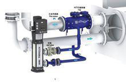 冷凝器自動清洗裝置利用冷卻水系統壓差原理,實現無動力運行,達到運行節能之顯著效果;也可靠外在動力能源進行沖洗。