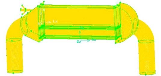 火電濕冷機組凝汽器結構比較復雜,本文對凝汽器系統進行簡化,利用Gambit軟件對其建立物理模型如圖1所示。
