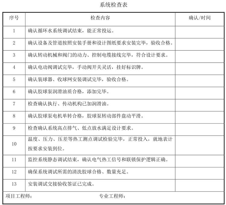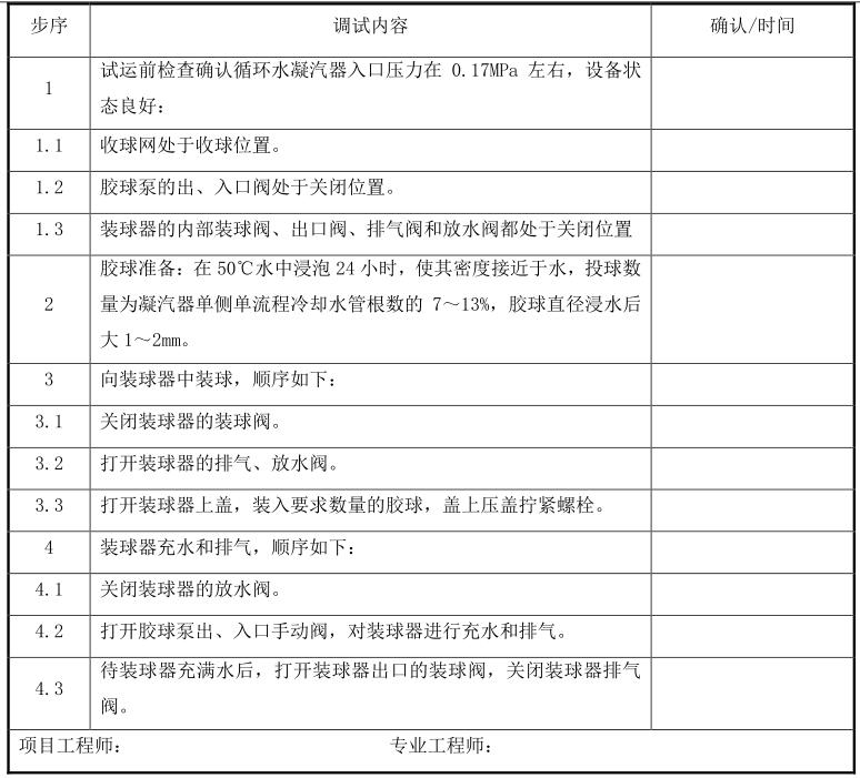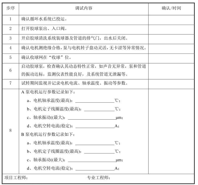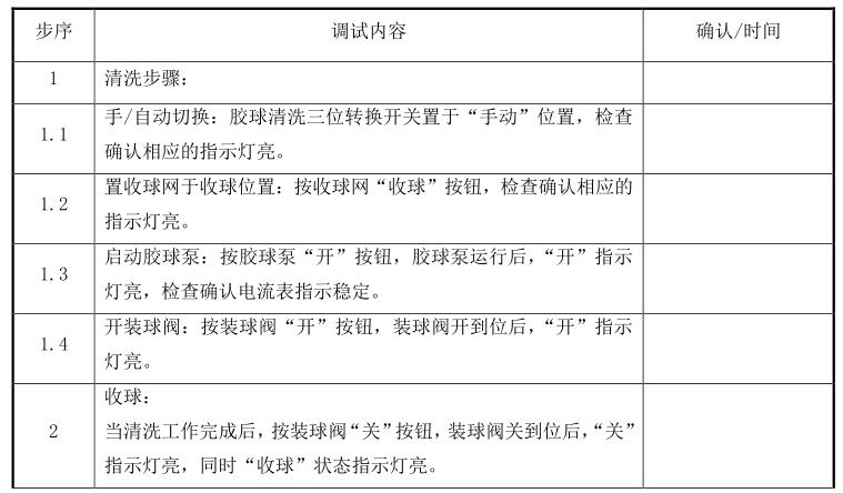 膠球清洗裝置系統調試措施詳細說明及表格?
