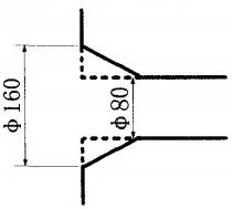 原出球口設計成倒噴嘴,在出球口處造成失壓,影響了膠球泵的抽吸能力,現將出球口口徑均縮小至DN80,如圖3所示,虛線部分為改造后情況,并將方形擴口封堵。膠球泵的抽吸能力與出球口面積成反比,改造后,膠球泵的抽吸能力提高802/402=4倍。