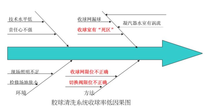 目標(biāo)值:使膠球清洗裝置收球率95%。#3機膠球清洗裝置系統(tǒng)收球率太低,不能在機組運行時清潔凝汽器,而且大量膠球隨循環(huán)水進(jìn)入了冷卻塔,使冷卻塔濾網(wǎng)堵塞嚴(yán)重,影響了循環(huán)水流量,使機組的安全運行受到了極大的威脅,因此,對膠球清洗裝置系統(tǒng)改進(jìn),提高收球率是必耍的。